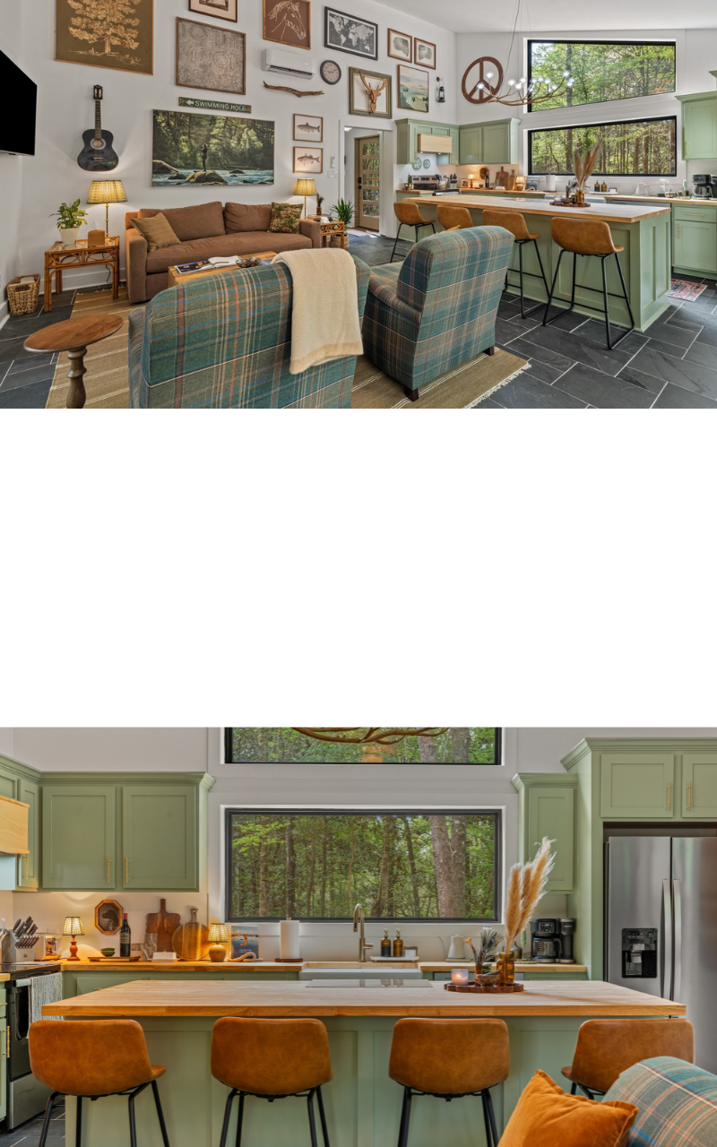Mornings start here—coffee brewed your way, sunlight pouring through the trees, and nowhere to rush off to. Evenings settle in slowly, with a bottle open, something good on the record player, and dinner unfolding at its own pace.
